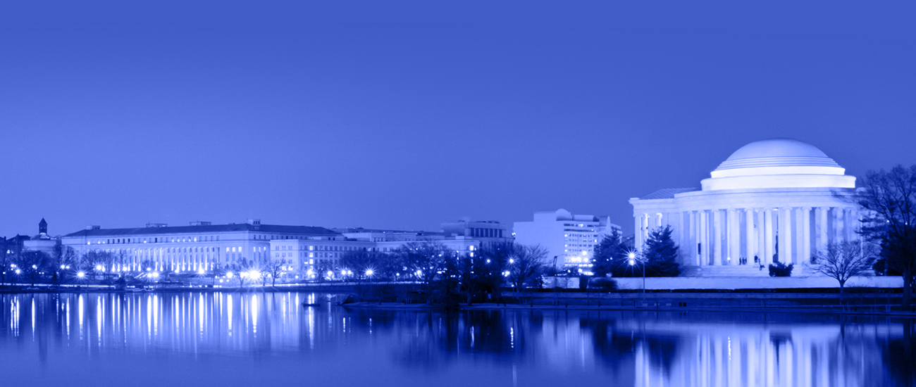 Photograph of the Thomas Jefferson Monument landscape, adorned with a blue filter.